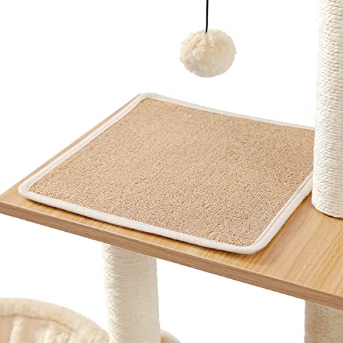 PAWZ Road Albero per gatti in legno Basic in multi-piattaforma, albero per gatti moderno con pompon sospeso e grande amaca, 108 cm