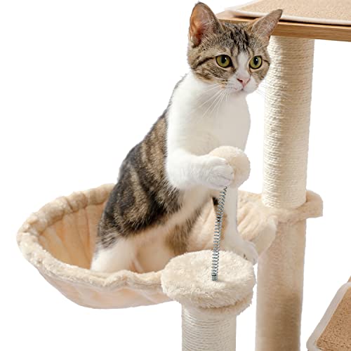 FUNZIONALITÀ COMPLETA: Una nicchia comoda, un'amaca ampia e profonda, un pompon con molla, un pompon sospeso, pali in sisal da graffiare, cuscino in alto, 3 strati per saltare.