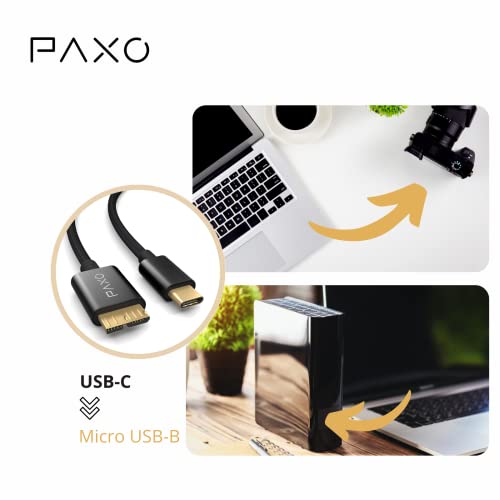 PAXO 0.3m Nylon USB C-MICRO USB 3.1 (USB 3.0) cavo per disco rigido, 5Gbit/s, cavo USB HDD, cavo dati, cavo di ricarica nero, USB C maschio a Micro B maschio