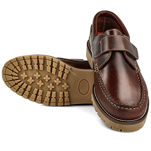 PAYMA - Scarpe da Barca Uomo Donna Bambino in Pelle Speciale Seahorse Oliata. Fatto in Spagna. 3 Occhielli Classici Stringata o Velcro. Colore: Marrone Velcro. Taglia 36