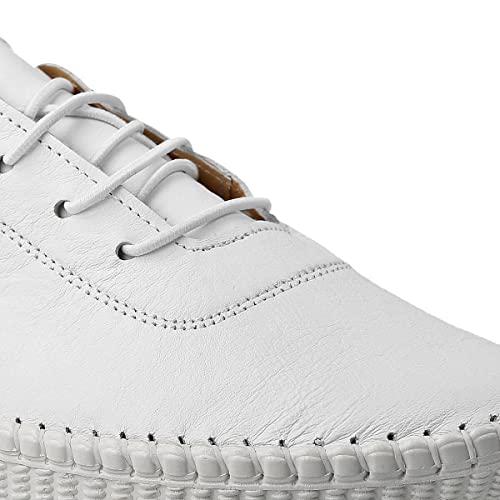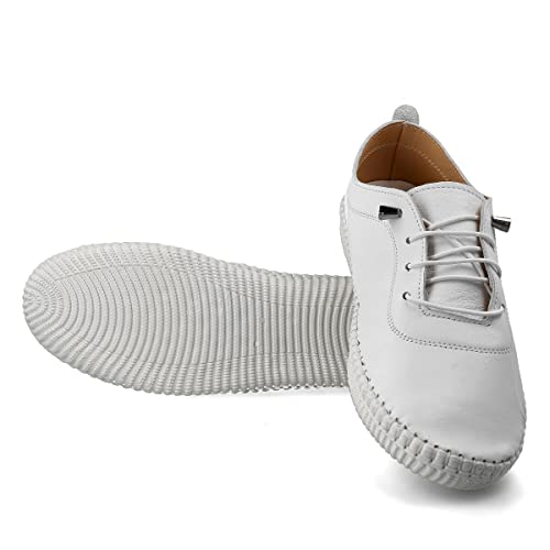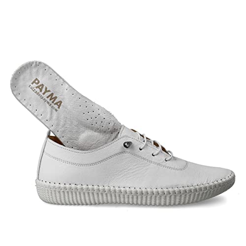 PAYMA - Sneaker Scarpe in Pelle Casual per Donna. Flessibile e Confortevole. Scarpe Sportive Piatte. Lacci Elastiche. Grande comodità. Colore: Bianco, Taglia: EU 36