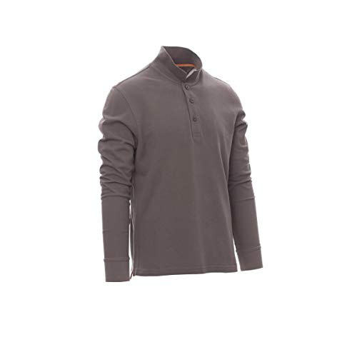PAYPER Florence Polo da Uomo a Manica Lunga 100% Cotone Colletto Polsino a Costine Spacchetti Laterali Rinforzo Sagomato retrocollo Grigio Smoke (XXL)