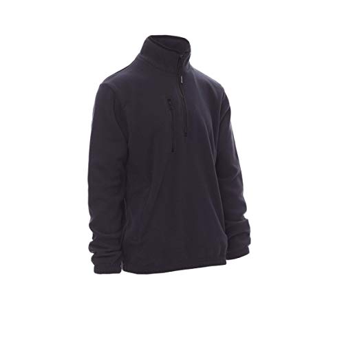 PAYPER Pirenei Felpa Pile da Lavoro Uomo Donna 100% Poliestere Mezza Chiusura Zip Elastici stringi Polso Tasca Frontale Blu Navy (L)