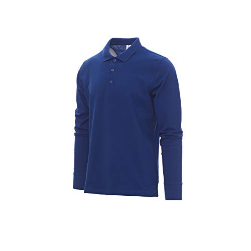 PAYPER Verona Polo da Uomo a Manica Lunga 100% Cotone Effetto Perlato Spacchetti Laterali Colletto Polsino a Costine Blu Royal (M)