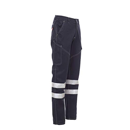 Payper WORKER WINTER REFLEX Pantalone unisex uomo donna 100% cotone bande reflex tasche laterali posteriori Blu Navy (S)