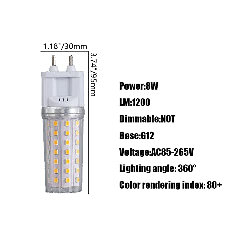 ★Lampadina LED G12 con base standard: Dimensioni del prodotto (ΦxH): i LED G12 sono disponibili in tre diverse potenze, fare riferimento alla Figura 6 per i dettagli. È molto facile sostituire il LED G12. Può essere immediatamente acceso a piena luminosità.