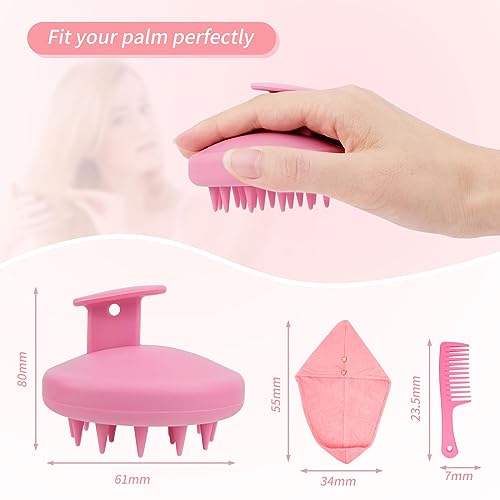 Pazzola Massaggio Cuoio Capelluto, Massaggiatore capelli in silicone, Massaggiatore Cuoio Capelluto e Corpo con Asciugamano Capelli Turbante e pettine per capelli, Stimola la Crescita dei Capelli