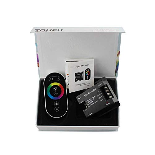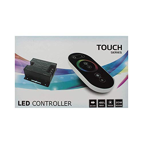 Questo dimmer RGB RF per strisce LED RGB da 12 V a 24 V è possibile regolare in modo continuo con il telecomando touch in dotazione e modificare i colori della striscia LED RGB o controllare gli effetti. Il dimmer touch a LED RGB è collegato dietro il trasformatore LED da 12 V/24 V DC ed è adatto per quasi tutte le strisce LED.