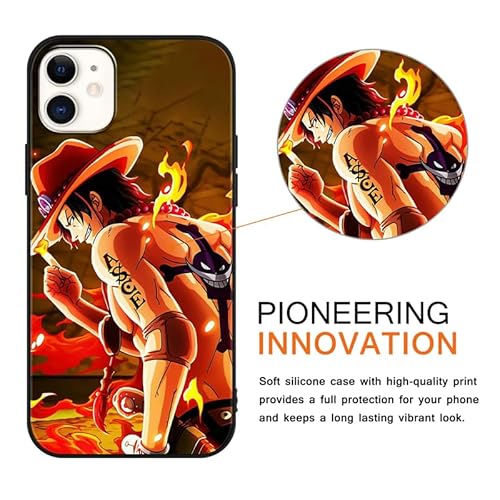 PBNDJVG 2 Confezioni Custodia per Apple iPhone 15 PRO MAX 6.7 Pollici, Anime One Piece Ace Motivo Manga Character Antiurto Protezione Case Flessibile TPU Silicone Cover Bumper, Nero1