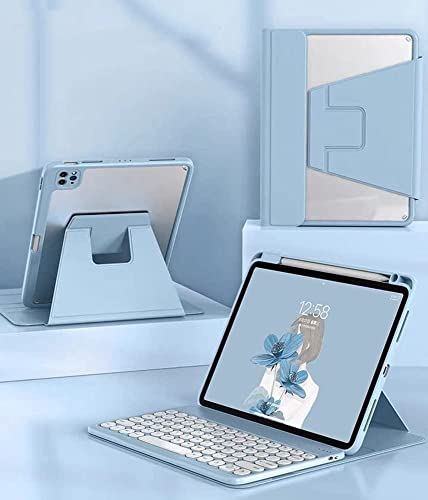 PboyiqiS Custodia per tastiera per iPad da 10,2", 9a/8a/7a generazione, girevole magneticamente staccabile e senza fili, con porta matite per iPad 9/iPad8/iPad7, 10,2", colore: Blu
