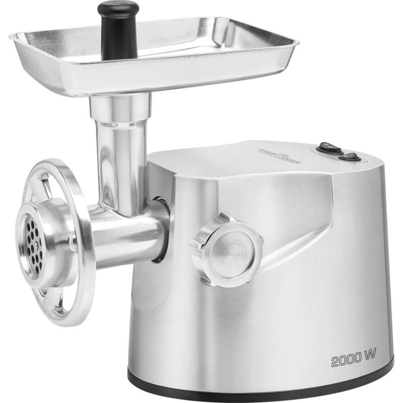 Dettagli tecnici Colore Argento Dimensione del prodotto, larghezza 278 mm Dimensione del prodotto, lunghezza 216 mm Dimensioni prodotto Altezza 214 mm Famiglia colore Grigio Materiale Alluminio colato sotto pressione, Acciaio inox Numero stadi di commutazione 1 Peso 6300 g Potenza 2000 W Tipo prodotto Tritacarne 220 - 240 V, 50/60 Hz, 2000 W max. Punti di forza e dettagli Trasmissione in metallo professionale 2000 watt max. Alloggiamento pressofuso in alluminio Anello di chiusura XXL con Ø 6,5 cm Testo tradotto automaticamente. Caratteristiche Tritacarne professionale robusto con alloggiamento pressofuso in alluminio e trasmissione in metallo resistente per una migliore trasmissione della forza Scatola di trasmissione in metallo (professionale e degli ingranaggi) Anello di chiusura XXL - Sostituzione degli accessori rapida e semplice Professionale estremamente antiscivolo arresto (metallo) Funzione giri orari e antiorari Elaborazione veloce di grandi quantità (circa 2,3 kg/Min.)