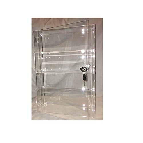 Una vetrina in acrilico trasparente lucida con porta anteriore e serratura di sicurezza. 2 chiavi incluse.