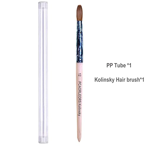 PCAORLEORS Pennello Per Unghie Acrilico Kolinsky Con Puro Visone Capelli Zibellino e Manico in Legno, Ultimi Tipi di Spazzola Gialla Rotonda per La Potenza Acrilica e l'estensione Delle Unghie (#12)