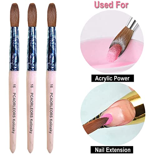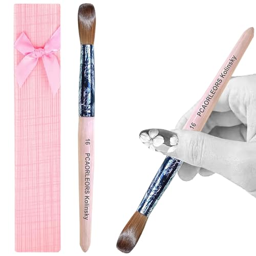 PCAORLEORS Pennello Per Unghie Acrilico Kolinsky Con Puro Visone Capelli Zibellino e Manico in Legno, Ultimi Tipi di Spazzola Gialla Rotonda per La Potenza Acrilica e l'estensione Delle Unghie (#16)