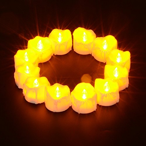 PChero 12-Pack Tealight LED a Batteria con Telecomando, Dripping Effect e Fiamma Tremolante, Durare fino a 48 ore [Giallo]