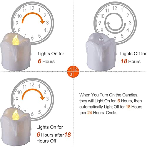 Candele senza fiamma con timer - Una volta accese le candele, si accendono per 6 ore, quindi si spengono automaticamente per 18 ore in 24 ore di ciclo, quindi non è necessario accendere e spegnere le candele ogni giorno.