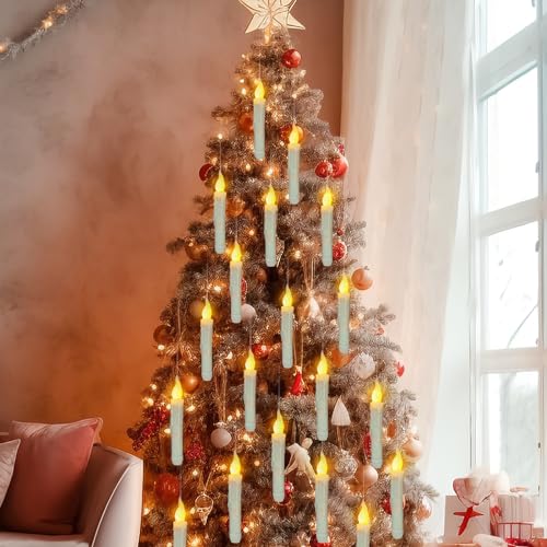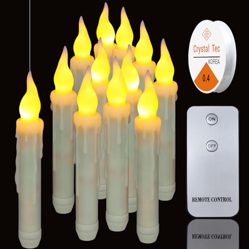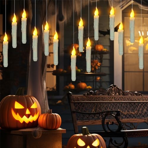 PChero Candele galleggianti, 12 pezzi, candele a LED affusolate a batteria con telecomando elettrico tremolante senza fiamma, per feste di Halloween, decorazione da soffitto, giallo caldo