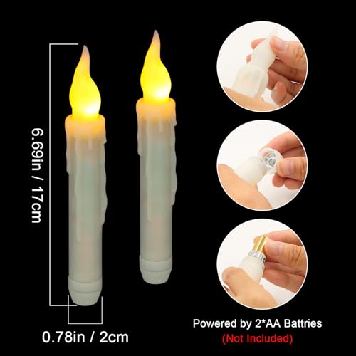 Funzionamento a batteria: ogni candela a LED è alimentata da 2 batterie AA (non incluse). Si consiglia di utilizzare batterie alcaline. 2 nuove batterie durano fino a circa 100 ore di lavoro.