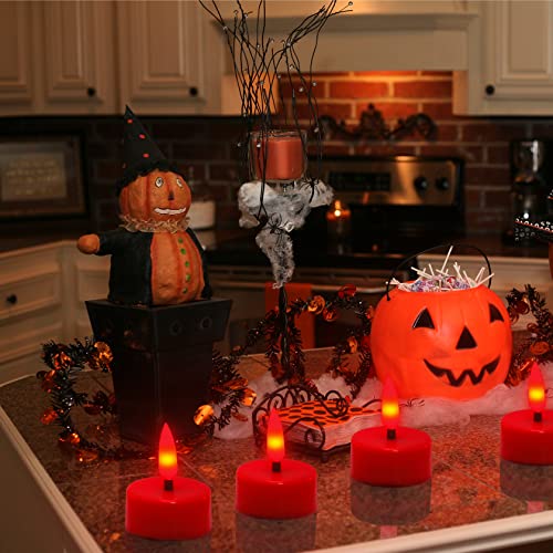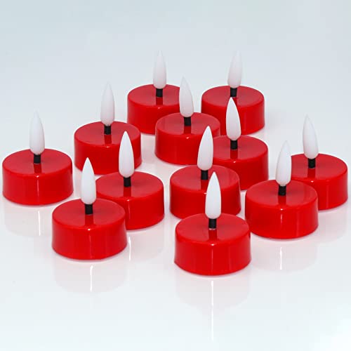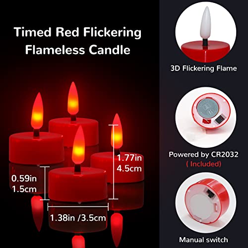 PChero Lumini a LED rossi con timer da tè, 12 candele con realistici stoppini 3D tremolanti per casa, camera da letto, feste, Halloween, decorazione natalizia - rosso