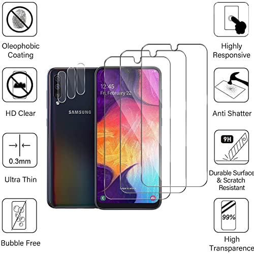 Pcircb 【3 Pack +3 Pack 】 Pellicola Vetro Temperato+Fotocamera Vetro temperato per Samsung Galaxy A50, 9H Protezione Schermo, Anti Graffi HD Trasparenza Protettiva Screen Protector