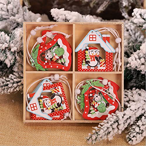 PCKJWSYHN L'Albero di Natale in Legno Ciondoli in Legno Addobbi Natalizi 12 PCS Ciondolo Addobbi Natalizi in Legno Natale Abbellimenti Ornamenti Decorativi Appeso Addobbi Albero di Natale Legno