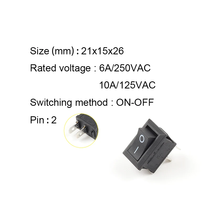 5 PCS/lot KCD1 21X15mm Rocker Switch ON-OFF 2 Position Power Switch 2Pin 6A/250VAC 10A/125VAC Red Blue Green Yellow Black White