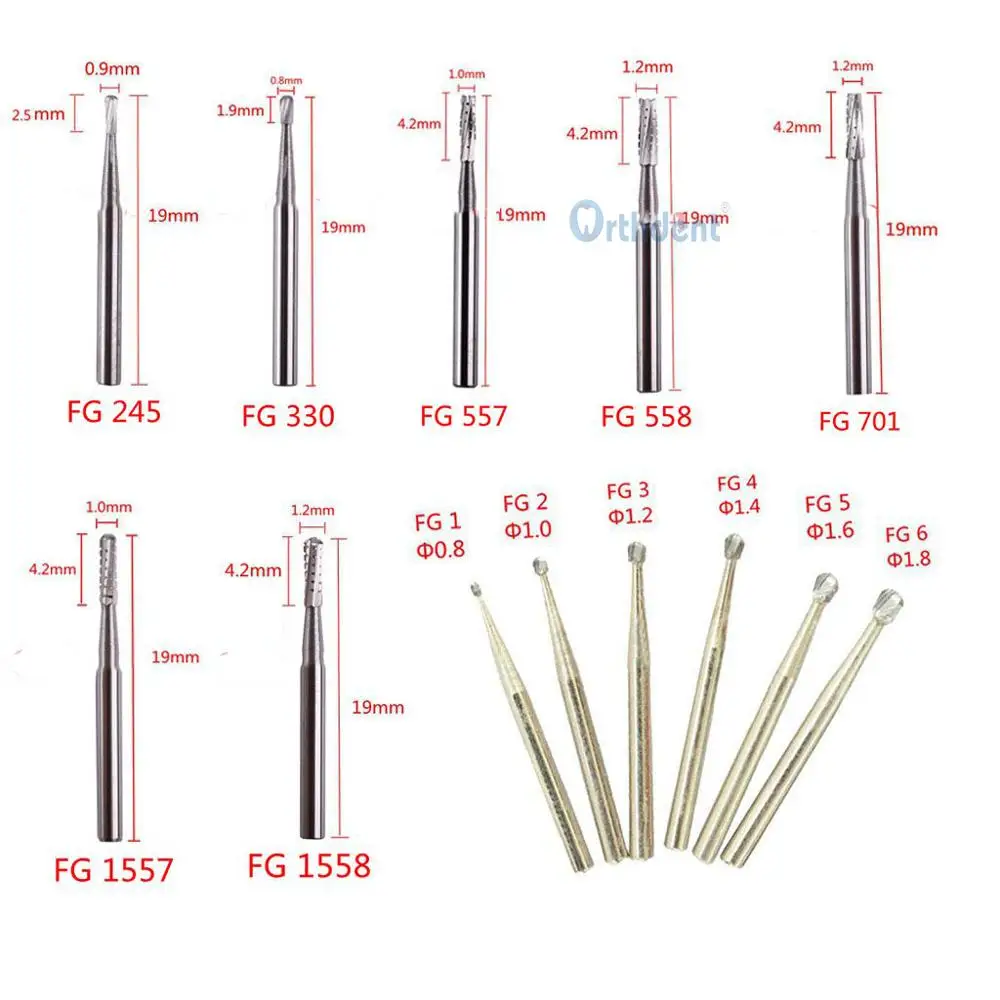 10 Pcs/Pack RX Round Carbide Bur Length 19mm FG 2/FG 4/FG 6/FG 245/FG 330/FG 5/FG 557/FG 558/FG 701/FG 1557/FG 1558/FG 1/FG 3