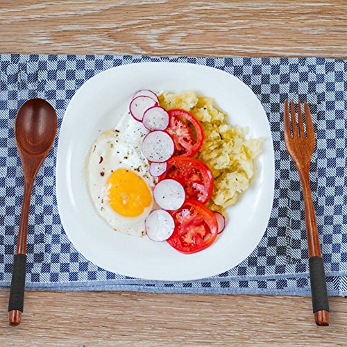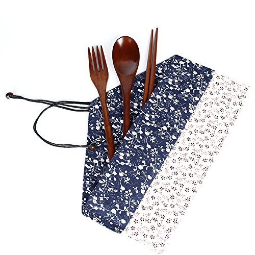 Pdfans - Set di posate in legno portatile, bacchette, forchetta, cucchiaio;