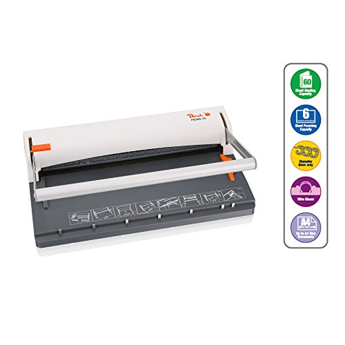 Peach PB300-15A Wire Binding Machine | Raccoglitore a filo personale più vicino DIN-A4 | Lega 60 lati | Include 34 pettini per rilegatura da 8 mm | Capacità di punzonatura di 6 fogli