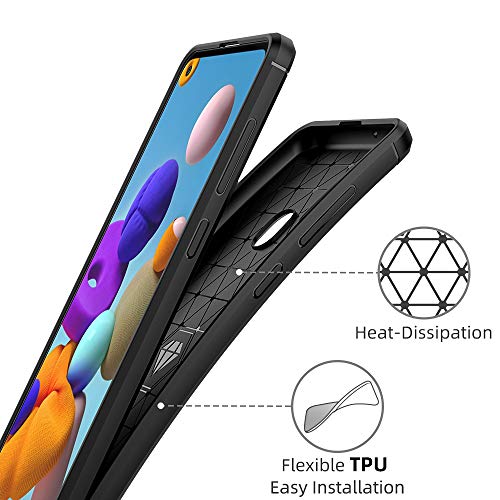 Peakally Cover Samsung Galaxy A21s, Fibra di Carbonio Morbido TPU Custodia Cover Anti Scivolo Custodia Protezione Antiurto per Samsung Galaxy A21s-Nero
