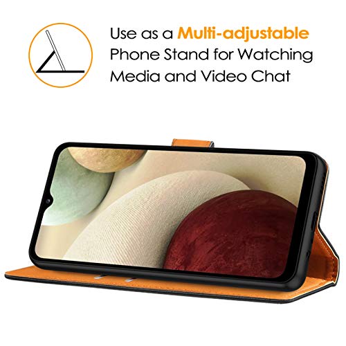Peakally Cover per Samsung Galaxy A12, Flip Caso in PU Pelle Premium Portafoglio Custodia [Kickstand] [Slot per Schede] [Chiusura Magnetica] per Samsung A12-Rosso