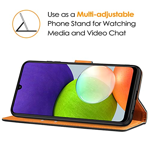Peakally Cover per Samsung Galaxy A22 4G (Non per A22 5G), Cover Libro in Pelle PU Premium, Custodia Portafoglio con Funzione [Supporto] [Slot per Schede] [Chiusura Magnetica]-Nero