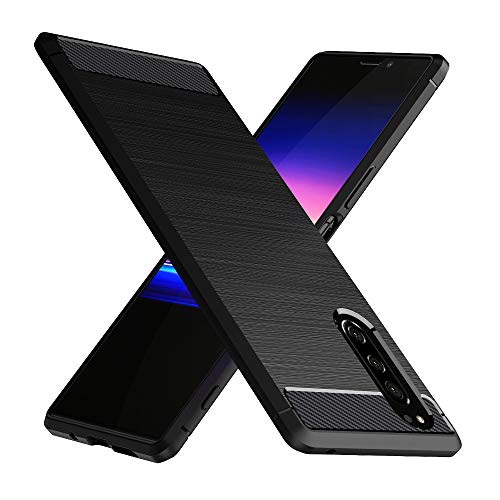 Peakally Cover Sony Xperia 5, Fibra di Carbonio Morbido TPU Custodia Cover Anti Scivolo Custodia Protezione Antiurto per Sony Xperia 5-Nero