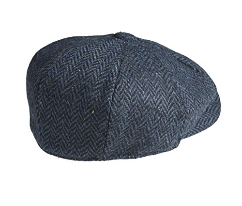 Peaky Blinders, Berretto a 8 Spicchi Piatto in Stile “Newsboy”, Lana di Tweed Spina di Pesce Blu. S(55 cm)