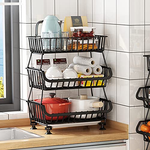 PEALOV Cesto Di Frutta Con Ruote,Carrello Frutta E Verdura In Metallo,Carrello Portafrutta E Verdura In Metallo Con 4 Ruote, Cesto Portaoggetti In Metallo Per Cucina