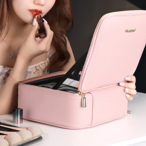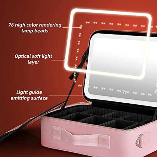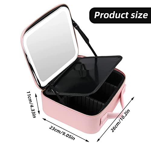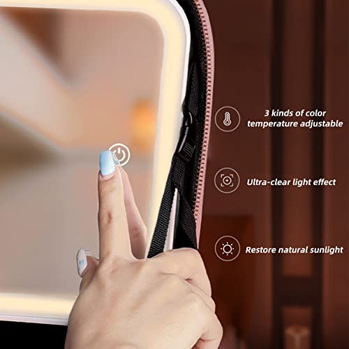 PEALOV Makeup Bag Con Specchio,Con 3 Luci Di Riempimento Colore,Borsa Per Cosmetici In Pelle PU,con Scomparto Divisorio,con Organizer Per Pennelli Da Viaggio,Custodia Per Cosmetici,Borsa Trucchi(Rosa)