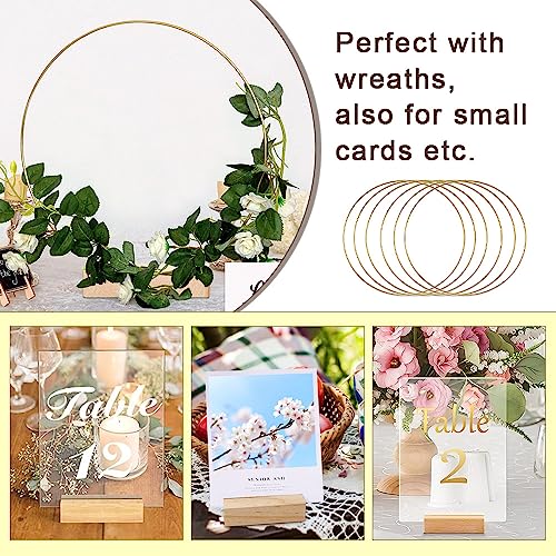 PEALOVCOM 6 Pz Anello Metallo 30 cm Centrotavola con Cerchio Fai Da Te Centrotavola Matrimonio Cerchio Anelli con 6 Pz Portacarte Legno per Acchiappasogni Decorazioni Lavori Creativi (Dorato)