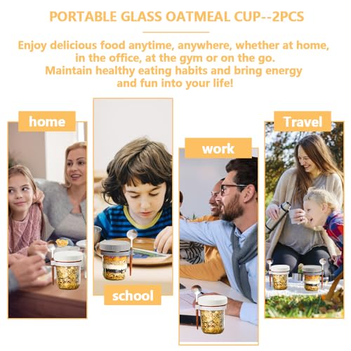 [Design portatile, goditi cibi deliziosi sempre e ovunque] La tazza di farina d'avena in vetro viene fornita con un anello per cucchiaio in silicone e un cucchiaio in acciaio inossidabile, che lo rendono facile da trasportare e da utilizzare in movimento. L'ampio diametro della tazza facilita l'inserimento e l'estrazione del cibo e facilita anche la pulizia.
