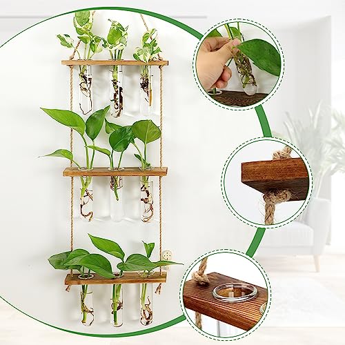 【Supporto creativo per la propagazione delle piante】 I nostri vasi adottano un design sospeso, un supporto per vasi in legno a tre strati, ogni strato può contenere 3 vasi, permettendoti di piantare facilmente piante acquatiche e la casa è piena di vitalità verde. Il portavaso ha una corda e può essere appeso al muro.È bello e non occupa spazio.È un'ottima decorazione per la tua casa.