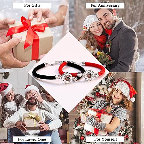 Pearbee Braccialetti per coppie Bracciale con corda intrecciata rossa/nera, Foto personalizzata Ti amo Bracciale con proiezione in 100 lingue per fidanzato, fidanzata, regalo di San Valentino 7