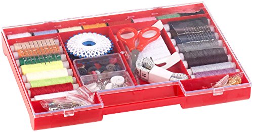 Numerosi accessori: Bottoni, Metro a nastro e molto altro ancora • Fili in 24 diversi colori • Robusta scatola portaoggetti