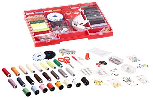 Ideale per gli spostamenti: per macchina, Bagaglio, Appartamento e molto altro ancora • 6 bottoni a pressione, 6 bottoni perforati, 12 Haftel, 1 gancio per pantaloni • ditale • Fascia elastica (200 cm) • Dimensioni: 23,8 x 18 x 3 cm, Peso: 170 g