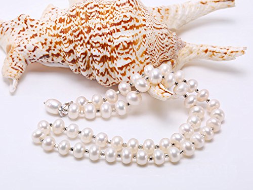 JYX Pearl Collana regolabile AA+ 9-10 mm bianco d'acqua dolce coltivata collana per le donne 52,1 cm, Perla, Collana di perle coltivate, collana di perle