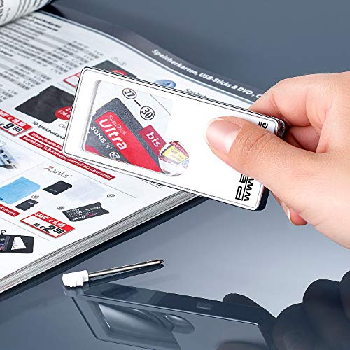 Lente di lettura con batterie, custodia protettiva e istruzioni in lingua tedesca. Lente d'ingrandimento con illuminazione - inoltre pertinente o adatta per: luci di ingrandimento, lampada di ingrandimento, riviste, occhiali da lettura, banconote, illuminato, ausilio di lettura, anziani, artigianato, vetro.