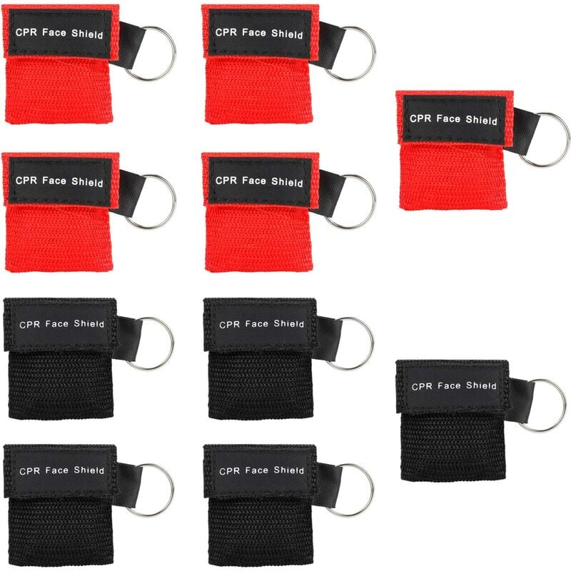 Facile sicurezza: la maschera di ventilazione con valvola a triplo giro previene il rischio di contatto con la bocca e infezione o contaminazione. Portatile - Dimensioni borsa: ca. 5x5,5cm. Maschera avanzata: ca. 20 * 28,5 centimetri. Come portachiavi con portachiavi, può essere riposto in tasca e nel vano portaoggetti o nel kit di pronto soccorso o kit di pronto soccorso. facile da usare - rimuovere lo stimolo dalla tasca e posizionarlo sul viso del paziente. Fissare lelastico sullorecchio e andare direttamente alla valvola o al naso. La maschera per RCP favorisce la tenuta ai gas del viso in modo che la bocca e il naso siano ventilati uniformemente. Prima di utilizzare questo dispositivo, è necessario eseguire la corretta formazione della ventilazione e del recupero cardiopolmonare Materiali - PE + Nylon, 100% nuova qualità Plastica: 10 pezzi