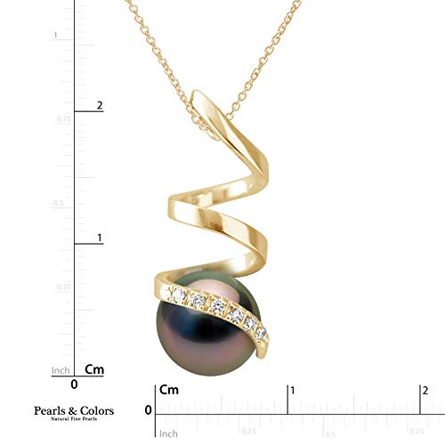 ⭐ Ciondolo con perle di Tahiti, gioielli con diamanti da 0,060 ct, vera perla coltivata di TAHITI rotonda 8-9 mm, qualità A+, oro giallo, catena placcata oro giallo in omaggio, lunghezza 42 cm, garanzia 2 anni, questo gioiello è il In confezione regalo. PRESTIGE e accompagnato dal suo Certificato di Autenticità e Garanzia Internazionale PEARLS & COLORS