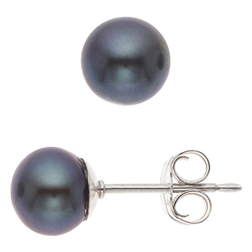 Pearls & Colors Donna 9 carati Oro bianco Rotonda Perla d'acqua dolce nero Perla FINEEARRING