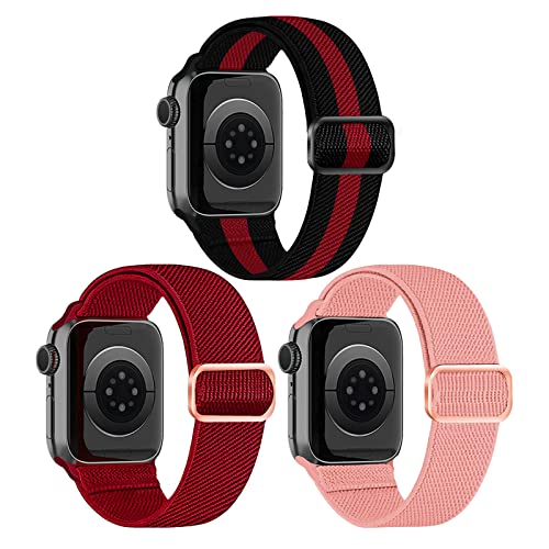 PearlSilk 3 Pezzi Cinturini Compatibili con Cinturino Apple Watch 42mm 44mm 45mm, Cinturini di Ricambio Sportivi in Nylon Elastici Regolabili per iWatch Series 7 6 5 4 3 2 1 SE