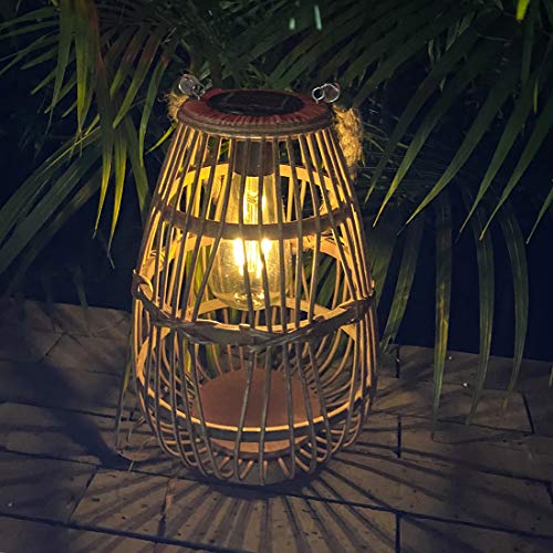 Pearlstar Lampada solare in rattan, da appendere, lanterna solare per esterni, impermeabile, per esterni, veranda, prato, cortile, vialetto, matrimonio,spegnimento, altezza 27 cm (style1)