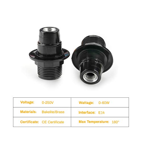 【Sicuro e di alta qualità】Il portalampada PEBA E14 ha superato la certificazione CE ed è realizzato in materiale ignifugo, resistente al calore (fino a 180 °C) e bachelite resistente alla corrosione.
